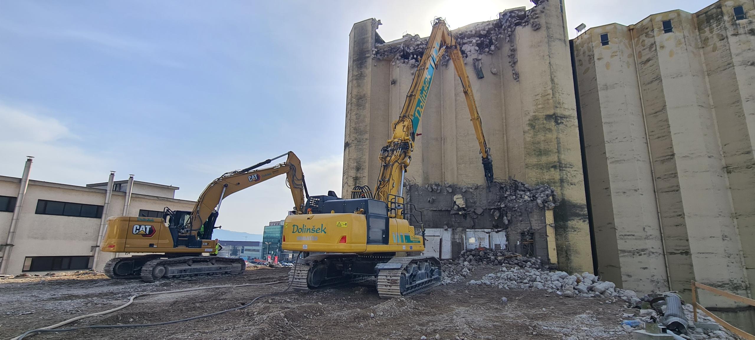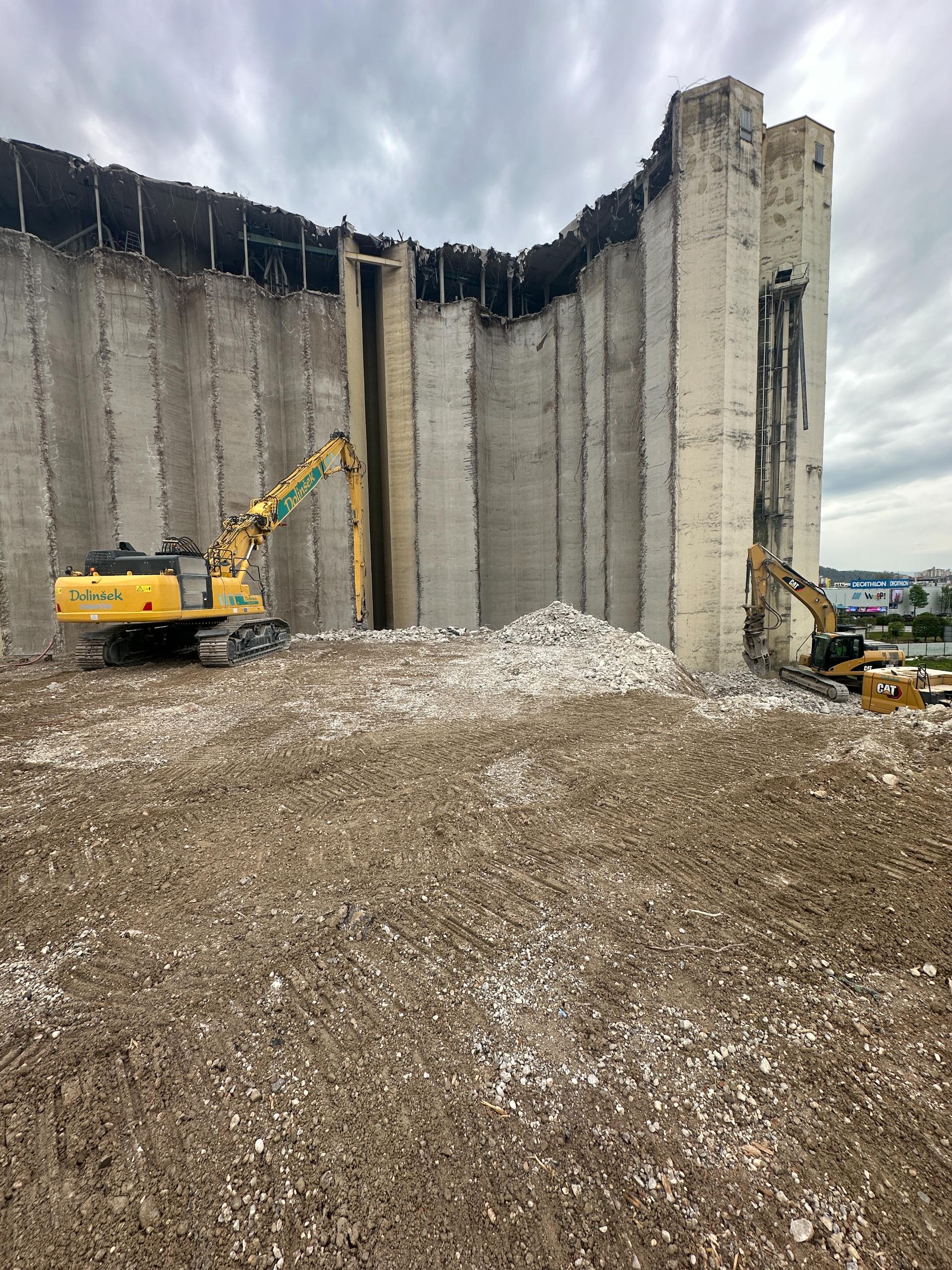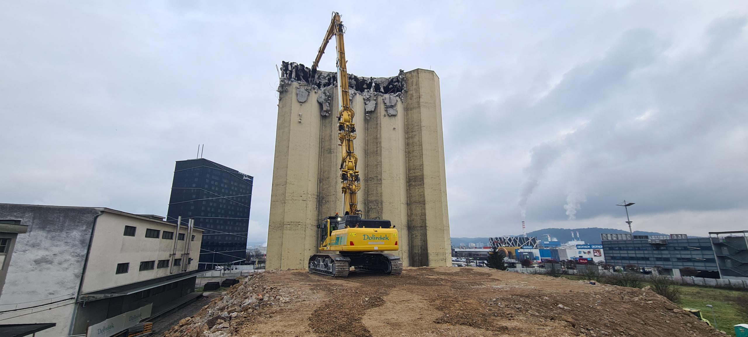 Konec avgusta 2024 smo pričeli z rušitvenimi deli na lokaciji ŽITO BTC v Ljubljani. Projekt obsega odstranitev dveh objektov iz armiranega betona. Objekt MLIN je visok 25m ter ima 980 m2 zazidalne površine. Objekt SILOSI je sestavljen iz šestih samostojnih, med seboj povezanih silosov iz osem kotnih celic. Vsak silos je visok 34,5m, povezovalno stopnišče pa 48,5m. Zazidalna površina objekta SILOSI je cca. 3000 m2.