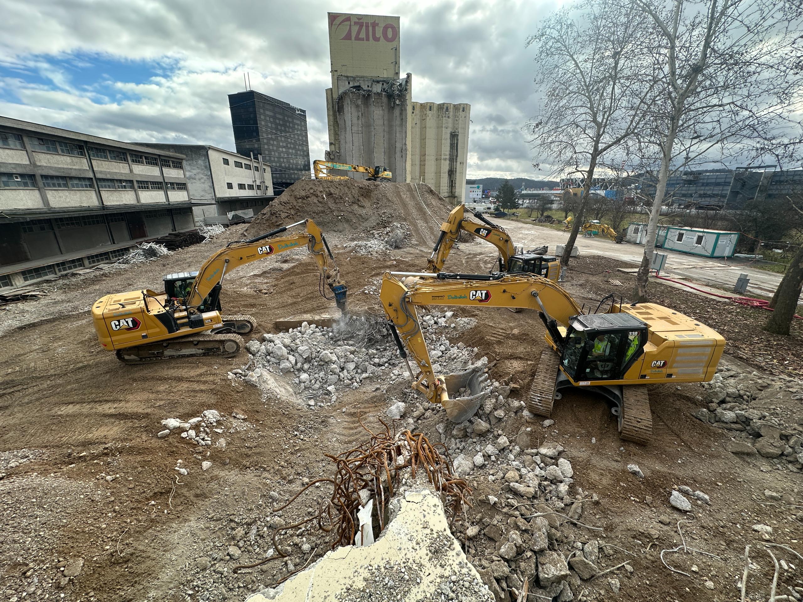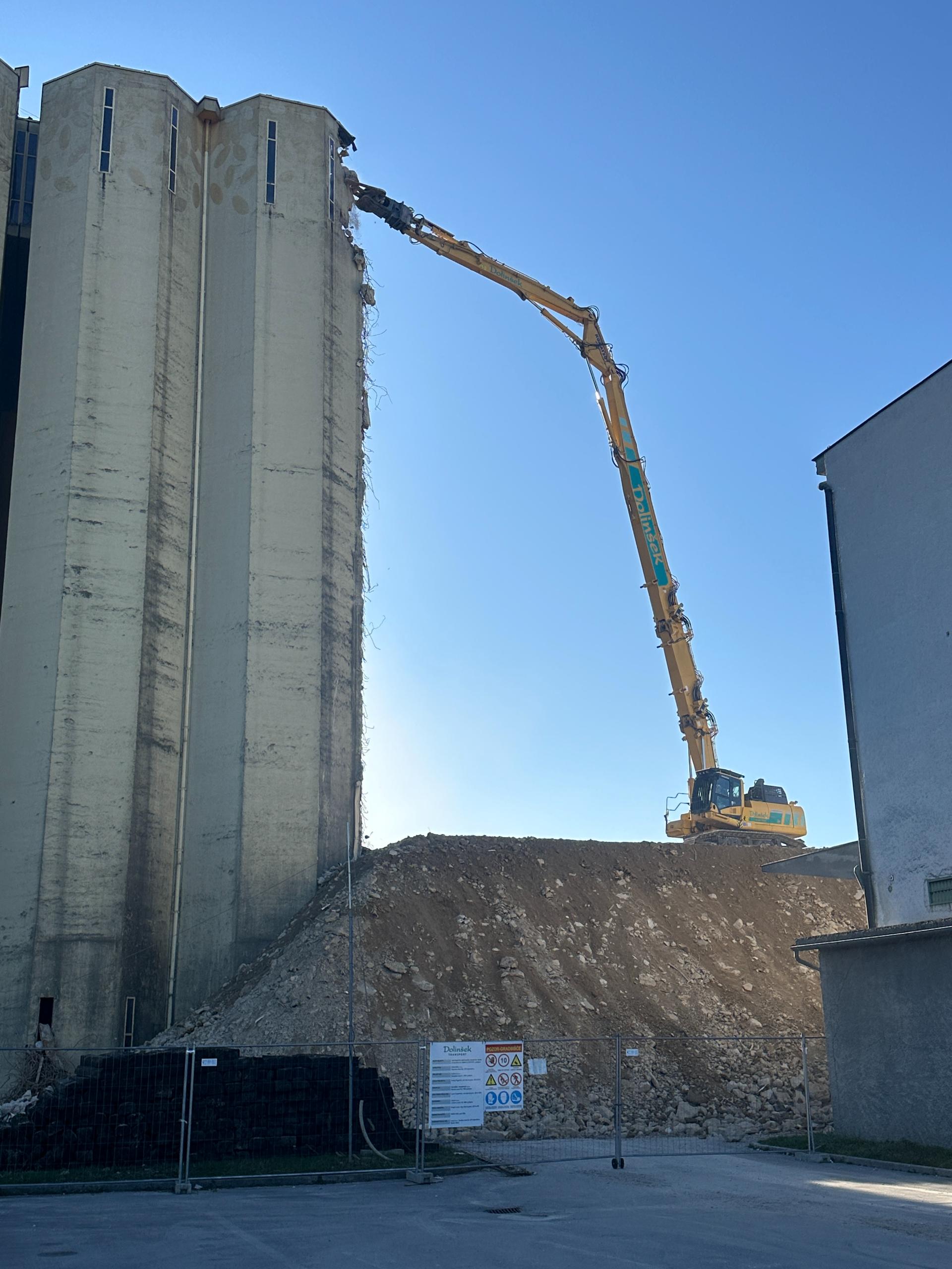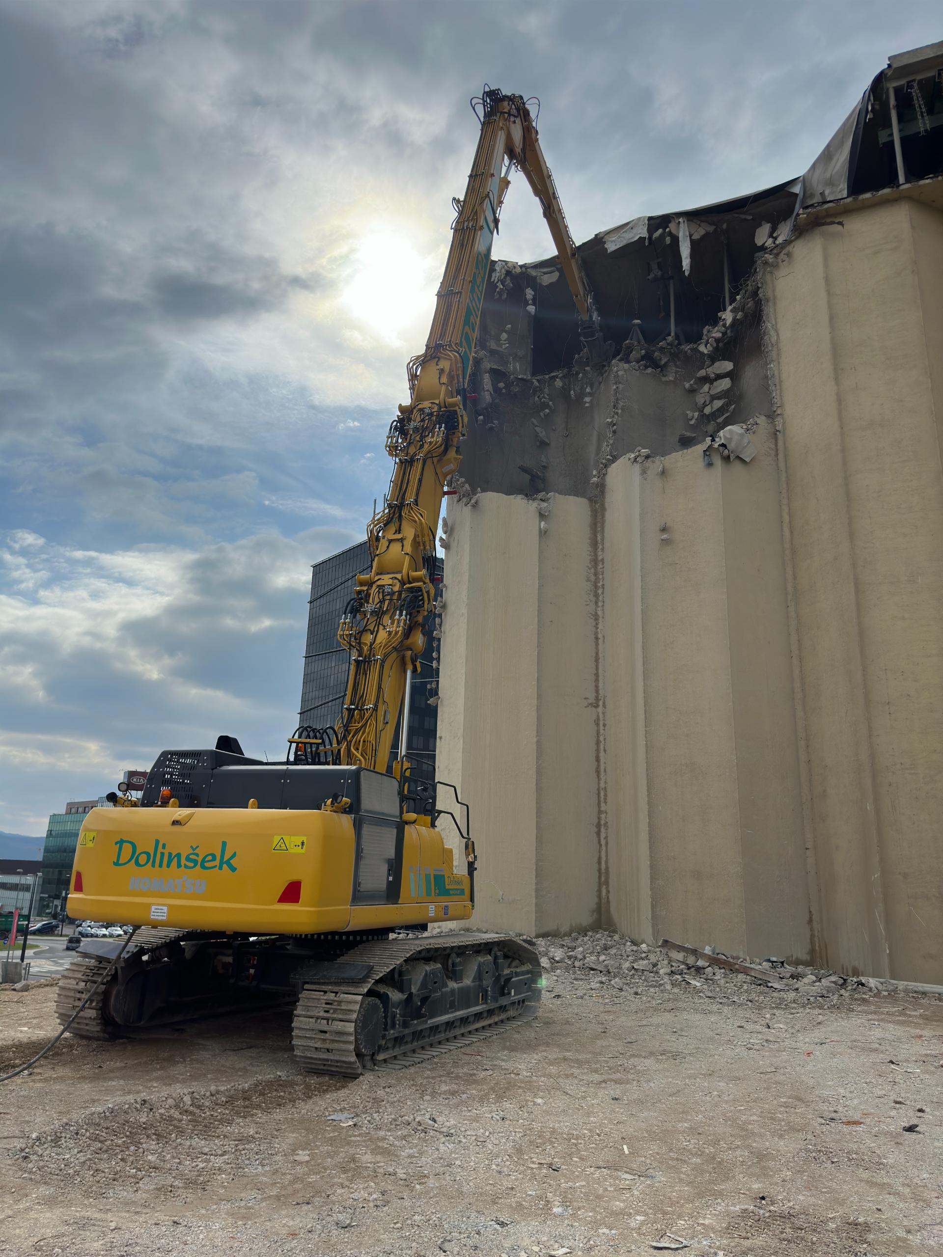 Konec avgusta 2024 smo pričeli z rušitvenimi deli na lokaciji ŽITO BTC v Ljubljani. Projekt obsega odstranitev dveh objektov iz armiranega betona. Objekt MLIN je visok 25m ter ima 980 m2 zazidalne površine. Objekt SILOSI je sestavljen iz šestih samostojnih, med seboj povezanih silosov iz osem kotnih celic. Vsak silos je visok 34,5m, povezovalno stopnišče pa 48,5m. Zazidalna površina objekta SILOSI je cca. 3000 m2.